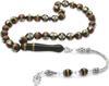 Gümüş Hediye Al 925 Ayar Gümüş Püsküllü Kırmızı-Beyaz Mine Dolgulu Pirinç Sarmal Küre Kesim Kuka Tesbih
