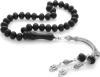 Tesbihane 925 Ayar Gümüş Püsküllü Tekerlek Kesim Siyah Sıkma Kehribar Tesbih