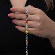 Nazar boncuğunu insanlar uzun yıllardan beri kötü bakıştan korunmak için kullanmışlardır. Kötü bakışların insanlar üzerinde olumsuz etki oluşturmasına karşı bir önlemdir nazar boncuğu… Bu sebeptendir ki insanlar sevdiklerini korumak için nazar boncuğu takmaktadır. Bu nazar bileklik de şıklığı ve zarafeti yansıtıyor. Rengarenk tasarımıyla göz alıcı şıklıkta... Her dönem sevilen ve şıklığından ödün vermeyen bu modeli; doğum günü hediyesi, sevgililer günü hediyesi veya annelere hediye olarak özel günlerde tercih edebilirsiniz. Renkli nazar kadın bileklik, 925 ayar gümüşten imal edilmiştir. Gümüş üzerine rodyum kaplama yapılmıştır. Rodyum kaplama yapılan gümüş kadın bileklikler parlaklığını uzun süre muhafaza eder, oksitlenmesi gecikir. Tüm gümüş kadın bilekliklerinde olduğu gibi bu gümüş renkli nazar kadın bileklik de tamamı el emeği ile üretilmiştir. Gümüş ve değerli taşlar nedeniyle belirtilen ortalama ürün ağırlığında ± %10 sapma olabilmektedir.