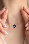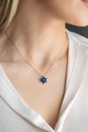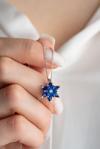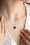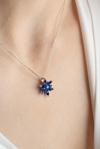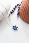925 Ayar Gümüş Rodyumlu Mavi Taşlı Lotus Çiçeği Kolye