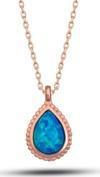 Gümüş Rose Damla Mavi Opal Taşlı Kadın Kolye