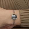 En kaliteli, en parlak, en ışıltılı taşlarla hazırlanmış gümüş elmas montür bileklik modeli sevgisini bir kez daha anlatmak isteyenleri bekliyor. Bu şık bayan bileklik modeli 925 ayar gümüşten imal edilmiştir. Gümüş üzerine rose altın kaplama yapılmıştır. Rose altın kaplama yapılan gümüş bayan bileklik modelleri parlaklığını uzun süre muhafaza eder ve oksitlenmesi gecikir. Bileklik üzerinde bulunan beyaz taşlar zirkondur. Tüm bayan bileklik modellerinde olduğu gibi gümüş elmas montür bayan bileklik modeli de el emeği ile üretilmiştir. Gümüş ve değerli taşlar nedeniyle belirtilen ortalama ürün ağırlığında ± %10 sapma olabilmektedir.