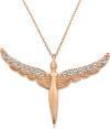 Melekler saflığın ve temizliğin simgeleridir. Bu nedenle melek kolye hediye edilen kişiye melek kadar saf ve temiz olduğu mesajı verilmektedir... Aşkınızı meleklerin koruması için tasarlanan bu özel kanatlı melek kolyeyi sevgilinize; doğum günü, sevgililer günü ve özel günlerde hediye ederek onları mutlu edebilirsiniz. Kolye; 925 ayar gümüşten imal edilmiştir. Gümüş melek kolye üzerine rose kaplama yapılmıştır. Rose kaplama yapılan tüm kolyeler parlaklığını uzun süre muhafaza eder, gümüşü pembe renge çevirir. Tüm gümüş kolyelerde olduğu gibi bu gümüş rose kanatlı melek kolye de el emeği ile üretilmiştir. Gümüş ve değerli taşlar nedeniyle ürün ağırlığında ± %10 sapma olabilmektedir.