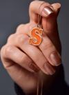Papatya Silver 925 Ayar Gümüş Rose Kaplama Parlayan Rüya Serisi Tasarım Ebruli Cam Boyalı Turuncu S Harfi Kolye