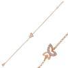 Kelebek simgesi; huzur, mutluluk, gençlik ve romantizm duygularının tekrar canlanması, temiz ve saf bir sevgi değeri taşımaktadır. Kadınların genellikle kolye ve bilekliklerde kullandıkları son derece zarif görüntü sunan kelebek modelleri; Yunan ve Uzak Doğu takı dünyasında popüler bir yer almakta, bedenin olgunlaşması temsil etmektedir. Psikolojik olarak ise kelebek modelleri için ruhun değişimi ve yenilenmesi olarak anlatılmaktadır. Bu şık bileklik; doğum günü hediyesi, sevgililer günü veya özel günlerde tercih edilebilecek mükemmel bir seçenektir. Bileklik 925 ayar gümüşten üretilmiştir. Gümüş üzerine rose kaplama yapılmıştır. Rose kaplama yapılan kadın bileklikler parlaklığını uzun süre muhafaza eder ve oksitlenmeyi geciktirir. Tüm gümüş bilekliklerde olduğu gibi gümüş kelebek bileklik de el emeği ile üretilmiştir. Üzerinde bulunan taşlar zirkondur. Gümüş ve değerli taşlar nedeniyle belirtilen ürün ağırlığında ± %10 sapma olabilmektedir.
