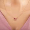 Kelebek; kadınlarca tercih edilen en popüler motiflerden biridir. Sevenlerine doğanın gizemini ve insan hayal gücünün zenginliğini hatırlatır. Özgürlüğü masumiyeti ve saflığı simgeleyen kelebekler, tertemiz sevginin ve aşkın ifadesidir. Sizin olduğu kadar sevdiklerinizin de keyifle takacağı kelebek kadın kolye, sevdiğinize en güzel hediyelerden biri olacaktır. Kolye 925 ayar gümüşten imal edilmiştir. Gümüş üzerine rose kaplama yapılmıştır. Rose kaplama yapılan gümüş kadın kolyeler parlaklığını uzun süre muhafaza eder ve oksitlenmesini geciktirir. Gümüş olan zincir boyu ortalama 45 cm'dir. Tüm gümüş kadın kolyelerde olduğu gibi gümüş kelebek kadın kolye modeli de el emeği ile üretilmiştir. Gümüş ve değerli taşlar nedeniyle belirtilen ortalama ürün ağırlığında ± %10 sapma olabilmektedir.