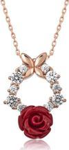 Kırmızı güller tarih boyunca farklı kültürlerde görünmüşle, dini veya siyasi semboller taşımışlardır. Kırmızı gül tarih boyunca şiirlere ve resimlere ilham kaynağı olmuştur. Bununla birlikte kırmızı gül aşkın sembolüdür ve en çok bu yönüyle tanınır. Kırmızı gül aşk ve sadakât anlamına gelir. Tek kırmızı gülün anlamı ise “Seni seviyorum” demektir. Siz de sevginizi anlatabileceğiniz gümüş kırmızı gül kolyeyi sevdiğinize armağan edebilir, ona olan sevginizi teninde hissettirebilirsiniz. Bu şık kolye; doğum günü hediyesi, sevgililer günü veya özel günlerde tercih edilebilecek mükemmel bir seçenektir. Kolye; 925 ayar gümüşten imal edilmiştir. Gümüş üzerine rose kaplama yapılmıştır.Rose kaplama yapılan ürünler gümüşe pembe bakır rengi verir. Diğer kolyelerde olduğu gibi gümüş kırmızı gül kolye de el emeği ile üretilmiştir. Gümüş ve değerli taşlar nedeniyle belirtilen ortalama ürün ağırlığında ± %10 sapma olabilmektedir.