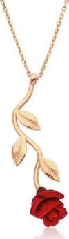 Gümüş Rose Kırmızı Gül Kolye