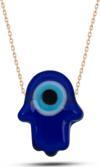 925 Ayar Gümüş Rose Mavi Nazarlı Cam Fatma Ana Eli Kadın Kolye