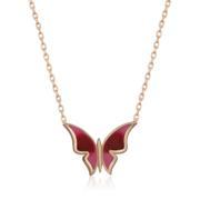 Özgürlüğü masumiyeti ve saflığı simgeleyen kelebekler, tertemiz sevginin ve aşkın ifadesidir. Bahar kelebekleri kolye anlam itibari ile aşkın küçük bir kıvılcım ile başladığı daha sonra büyük bir sabır ile büyüdüğü ve en sonunda ilan-ı aşkı ifade eder. Sizin olduğu kadar sevdiklerinizin de keyifle takacağı minimal kelebek kolye en güzel hediyelerden biri olacaktır. Kolye 925 ayar gümüşten imal edilmiştir. Gümüş üzerine rose kaplama yapılmıştır. Rose kaplama yapılan gümüş kolyeler parlaklığını uzun süre muhafaza eder, ve oksitlenmeyi geciktirir. Kolye üzerinde bulunan renkler mine işlemesidir. Gümüş olan zincir boyu ortalama 45 cm'dir. Tüm gümüş kolyelerde olduğu gibi gümüş minimal kelebek kolye de el emeği ile üretilmiştir. Gümüş ve değerli taşlar nedeniyle belirtilen ürün ağırlığında ± %10 sapma olabilmektedir.