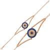 Nazar boncuğunu insanlar uzun yıllardan beri kötü bakıştan korunmak için kullanmışlardır. Kötü bakışların insanlar üzerinde olumsuz etki oluşturmasına karşı bir önlemdir nazar boncuğu… Bu sebeptendir ki insanlar sevdiklerini korumak için nazar boncuğu takmaktadır. Bu nazar bileklik de şıklığı ve zarafeti yansıtıyor. Her dönem sevilen ve şıklığından ödün vermeyen bu modeli; doğum günü hediyesi, sevgililer günü hediyesi veya annelere hediye olarak özel günlerde tercih edebilirsiniz. Gümüş nazar bayan bileklik, 925 ayar gümüşten imal edilmiştir. Gümüş üzerine rose altın kaplama yapılmıştır. Rose altın kaplama yapılan gümüş bayan bileklikler parlaklığını uzun süre muhafaza eder, gümüşü pembe renge çevirir ve oksitlenmesi gecikir. Üzerinde bulunan taşlar firuze ve zirkondur. Tüm gümüş bayan bilekliklerinde olduğu gibi bu gümüş nazar bayan bileklik modeli de tamamı el emeği ile üretilmiştir. Gümüş ve değerli taşlar nedeniyle belirtilen ortalama ürün ağırlığında ± %10 sapma olabilmektedir.