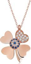 Gümüş Rose Nazarlı Dört Yapraklı Yonca Kadın Kolye