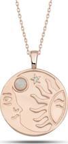 Gümüş Rose Opal Beyaz Taşlı Ay Güneş Kadın Kolye