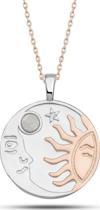 Gümüş Rose Opal Beyaz Taşlı Ay Güneş Kadın Kolye
