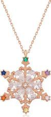 Gümüş Rose Renkli Taşlı Kar Tanesi Kadın Kolye