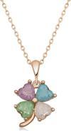 Gümüş Rose Renkli Taşlı Kalp Yonca Kadın Kolye