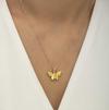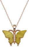 Gümüş Rose Sarı Kaplangözü Taşlı Kelebek Kolye