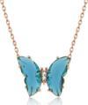 Gümüş Rose Turkuaz Cam Kelebek Kolye