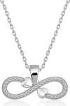 Sonsuzluk sembolü ile olanlara olan sonsuz sevginizi yansıtın. Sizin olduğu kadar sevdiklerinizin de keyifle takacağı bu kolye, aynı zamanda sevginizi paylaşabileceğiniz farklı bir hediye olacaktır. Sonsuzluk kalpler kolye 925 ayar gümüşten imal edilmiştir. Gümüş üzerine rodyum kaplama yapılmıştır. Rodyum kaplama yapılan gümüş kolye modelleri parlaklığını uzun süre muhafaza eder ve oksitlenmesi gecikir. Kolye üzerinde bulunan beyaz taşlar zirkondur. Gümüş olan zincir boyu ortalama 45 cm'dir. Bu özel tasarım sonsuzluk kalpler kolye modeli diğer tüm gümüş kolye modelleri gibi el emeği ile üretilmiştir. Gümüş ve değerli taşlar nedeniyle belirtilen ürün ağırlığında ± %10 sapma olabilmektedir.