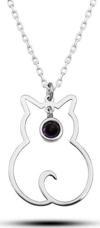 Gümüş Şubat Ayı Doğum Taşı Kedi Kadın Kolye