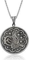 Tuğra, Osmanlı sultanlarının imzası anlamına gelir. Her tuğra; ona ait olan padişahın ismini, varlığını, hükümdarlığını ifade eder. Tuğra sembolü her padişaha göre farklı olmak üzere birçok şekilde günümüze ulaşmıştır. Tuğra Osmanlının her döneminde korunmuş, önemini hiç kaybetmemiştir. Ve zamanla hat sanatımızda da önemli bir yere sahip olup, günümüzde hattatlar tarafından sanatsal olarak yaşatılmaktadır. Bu sanatı yansıtan tuğralı şık gümüş kolyeyi severek kullanabilir doğum günü, sevgililer günü veya özel günlerde hediye olarak tercih edebilirsiniz. Tuğra kolye modeli 925 ayar gümüşten imal edilmiştir. Gümüş üzerine oksit kaplama yapılmıştır. Zincir boyu ortalama 55 cm'dir. Tüm gümüş kolye modellerinde olduğu gibi bu gümüş tuğra kolye modeli de tamamı el emeği ile üretilmiştir. Gümüş nedeniyle belirtilen ortalama ürün ağırlığında ± %10 sapma olabilmektedir.