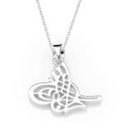 Tuğra, Osmanlı sultanlarının imzası anlamına gelir. Her tuğra; ona ait olan padişahın ismini, varlığını, hükümdarlığını ifade eder. Tuğra sembolü her padişaha göre farklı olmak üzere birçok şekilde günümüze ulaşmıştır. Tuğra Osmanlının her döneminde korunmuş, önemini hiç kaybetmemiştir. Ve zamanla hat sanatımızda da önemli bir yere sahip olup, günümüzde hattatlar tarafından sanatsal olarak yaşatılmaktadır. Bu sanatı yansıtan tuğralı şık gümüş kolyeyi severek kullanabilir doğum günü, sevgililer günü veya anneler gününde de hediye olarak tercih edebilirsiniz. Gümüş kolye, 925 ayar gümüşten imal edilmiştir. Gümüş üzerine rodyum kaplama yapılmıştır. Rodyum kaplama yapılan gümüş kolyeler parlaklığını uzun süre muhafaza eder, oksitlenmesi gecikir. Zincir boyu ortalama 45 cm'dir. Tüm gümüş kolye modellerinde olduğu gibi bu gümüş tuğralı kolye modeli de tamamı el emeği ile üretilmiştir. Gümüş nedeniyle belirtilen ortalama ürün ağırlığında ± %10 sapma olabilmektedir.