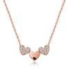 Kalp simgesi daima koşulsuz sevginin ve aşkın sembolü olmuştur. Dini öğretilerde ise kalbin gücü sınırsızdır. Çünkü kalp Yaradanın evi, bizim ise evrene açılan gerçeklik kapımızdır. Üç kalp kolye sevginizi temsil edecek en şık ve anlamlı kolyelerden biridir. Bu şık üç kalpli kolye; doğum günü hediyesi, sevgililer günü hediyesi veya annelere hediye olarak özel günlerde tercih edilebilecek mükemmel bir seçenektir. Gümüş zirkon taşlı üç kalp kolye 925 ayar gümüşten imal edilmiştir. Bu kolye üzerinde rose kaplama yapılmıştır. Rose kaplama yapılan gümüş kolye modelleri parlaklığını uzun süre muhafaza eder. Üzerinde bulunan ışıl ışıl taşlar zirkondur. Tüm gümüş kolye modellerinde olduğu gibi gümüş üç kalp kolye modeli de el emeği ile üretilmiştir. Gümüş ve değerli taşlar nedeniyle belirtilen ortalama ürün ağırlığında ± %10 sapma olabilmektedir.