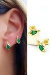 925 Ayar Gümüş Üzerine Altın Kaplama Tasarım Kök Zümrüt Taşı Minimal Küpe