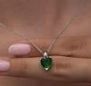Gümüş Yeşil Taşlı Kalpli Kadın Kolye