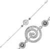 Sevdiklerinizi bu şık bileklikle mutlu etmeye ne dersiniz? Beyaz taşlarla ışıl ışıl parlayan bu şık bilekliği; doğum günü hediyesi, sevgililer günü hediyesi veya annelere hediye olarak özel günlerde tercih edebilirsiniz. Gümüş yuvarlak nazarlı bayan bileklik, 925 ayar gümüşten imal edilmiştir. Gümüş üzerine rodyum kaplama yapılmıştır. Rodyum kaplama yapılan gümüş bayan bileklik parlaklığını uzun süre muhafaza eder, oksitlenmesi gecikir. Tüm gümüş bayan bileklik modellerinde olduğu gibi bu gümüş yuvarlak nazarlı bayan bileklik modeli de tamamı el emeği ile üretilmiştir. Gümüş ve değerli taşlar nedeniyle belirtilen ortalama ürün ağırlığında ± %10 sapma olabilmektedir.