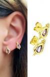 925 Ayar Gümüş Üzerine Altın Kaplama Tasarım Ametist Taşı Minimal Küpe