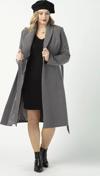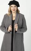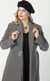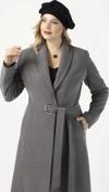 932 Gri Kadın Şal Yaka Kuşaklı Toka Detaylı Bülük Beden Kaşe Kaban