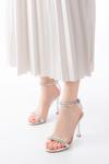 Morotonom A-30 Gümüş Taş Aksesuarlı Platformlu Topuklu Kadın Terlik