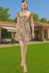Bu nefes kesici A-kesim elbise, yaz aylarının sıcak gecelerinde göz kamaştırıcı görünmenizi sağlayacak şekilde tasarlandı. Animal desenli poplin kumaşıyla şıklığınıza şıklık katarken, Carmen yakası ve fırfırlı kısa kollarıyla feminen bir hava yayıyor. Mini boyu ile bacaklarınızı ön plana çıkarırken, rahat kesim ve hafif kumaşıyla gün boyu konfor sunar. Mezuniyet baloları, düğünler veya özel davetler için mükemmel bir tercih olan bu elbise, unutulmaz anlar yaratmanıza yardımcı olacaktır.