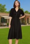 Kadın Kısa Kollu V Yakalı Yandan Yırtmaçlı Viskon Iki Iplik Elbise - Image 1