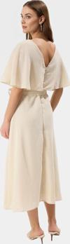 Zarif ve şık görünümün sırrı, bej rengi midi elbisemizde gizli! Keten görünümlü dokuma kumaştan üretilen bu elbise, rahatlığı ve şıklığı bir araya getiriyor. Kısa melek kolları, pelerin detayı ve A kesim kalıbı ile her vücut tipine mükemmel uyum sağlıyor. Günlük kullanım için ideal olan elbisemiz, özel günlerinizde de göz alıcı bir seçenek. Astarı sayesinde gün boyu konfor sunan elbisemiz, sıcak yaz günlerinde bile serin ve rahat kalmanıza yardımcı olacak. Ayrıca, kolay bakımı sayesinde uzun yıllar kullanabileceğiniz bir parça.