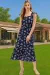 Ersefa A Kesim Midi Boy Shally Dokuma Viskoz Elbise Kare Yaka Mükemmel Uyum Özenle Seçilmiş Uzun Ömürlü