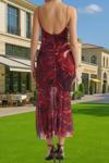 PayBuy A Kesim Piliseli Midi Tül Abiye Elbise Çiçek Desenli Yazlık Profesyonel Görünüm Dayanıklı Malzeme