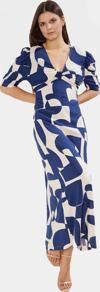 Yüksek kaliteli viskon kumaş, yumuşak dokusu ve nefes alabilirliği ile teninize ferahlık hissi verir. A-line kesim, vücut hatlarınızı zarifçe ortaya koyarken, kısa ve standart kolları hareket özgürlüğü sağlar. Geometrik desen, elbiseye modern ve şık bir hava katarken, lacivert rengi her ortama uyum sağlar. Makinede yıkanabilme özelliği sayesinde bakımı oldukça kolaydır.