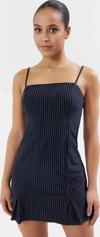 Yaz aylarına damgasını vuracak, şık ve rahat bir elbise arıyorsanız doğru yerdesiniz! Bu lacivert çizgili A kesim mini elbise, 100% viskoz dokumasıyla hem şıklığı hem de konforu bir arada sunuyor. A kesim kalıbı ve kolsuz tasarımıyla vücudunuzu mükemmel bir şekilde sarar ve özgüveninizi yükseltir. 90 cm boyuyla mini uzunluğu, modern ve cesur bir tarz yaratırken, ince çizgiler ise şıklığınıza zarafet katıyor.