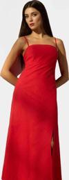 Yaz aylarının enerjik ruhunu yansıtan bu kırmızı A-line elbise, benzersiz tasarımı ve konforlu dokusuyla günlük yaşamınızın şıklık dozu olacak. Pamuk ve keten karışımı kumaştan üretilen elbise, nefes alabilen yapısıyla sıcak havalarda serin kalmanıza yardımcı olurken, yumuşak dokusuyla gün boyu rahatlık sağlar. A-line kesimiyle her vücut tipine mükemmel uyum sağlayan elbise, maxi boyuyla zarif ve şık bir görünüm sunuyor. Kolsuz tasarımı ve yan yırtmaç detayıyla modern bir stil yakalarken, düz deseni ve canlı kırmızı rengi ile her kombini tamamlayacak bir parça.