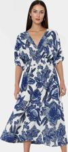 Bu nefes alan, hafif dokuma kumaştan üretilen midi elbise, yaz günlerinde şıklığınızdan ödün vermeden rahat etmenizi sağlar. A-line kesimiyle her vücut tipine mükemmel uyum sağlarken, çiçek deseniyle enerjik ve modern bir stil oluşturur. Kısa kolları ve rahat V yakası, sıcak havalarda serin kalmanıza yardımcı olur. Lastikli beliyle gün boyu konfor sunan elbise, çeşitli aksesuarlarla kombinlenerek farklı tarzlara uyarlanabilir.
