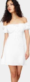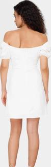 Şıklığı ve rahatlığı bir araya getiren bu beyaz mini elbise, gardrobunuzun yeni favorisi olacak. Nefes alan krep kumaştan üretilen elbise, yaz aylarında gün boyu konfor sunar. A-line kesimiyle her vücut tipine mükemmel uyum sağlar. Balon kolları ve omuzları açık tasarımıyla feminen ve modern bir stil yaratır. Carmen yakasıyla şıklığınıza zarafet katar. Hem günlük hem de özel günler için idealdir.