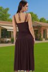 Ersefa A Line V Yaka Tül Midi Abiye Elbise Örme Kumaş Yazlık Mezuniyet Trend Tasarım Zarifane Tasarım