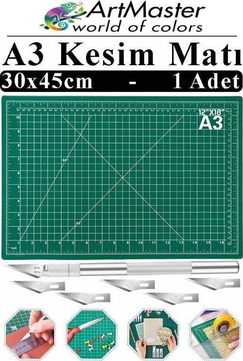 Ürün Adı: Artmaster A3 Kesim Matı ve Kretuar Seti 1 Adet 30x45 cm Çift Taraflı Çizim Matı Kesim Tablası Kesim Altlığı Kesme Madı Proje