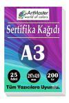 ArtMaster A3 Sertifika Kağıdı 25 Adet 200 Gram Kalın Fotokopi Kağıdı Tüm Yazıcılara Uyumlu 29.7x42 cm Kalın Baskı Kağıdı