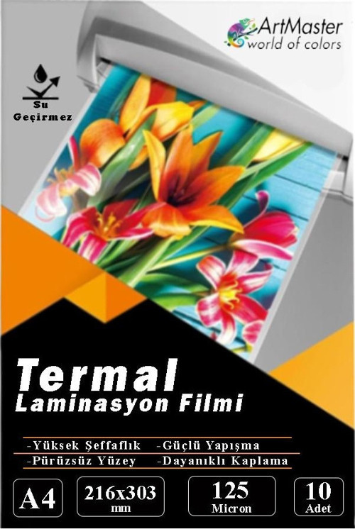 Ürün Adı: Artmaster A4 Parlak Laminasyon Filmi 10 Lu 1 Paket 125 Mikron Pvc Kaplama Laminasyon Kaplama Poşeti 10 Adet