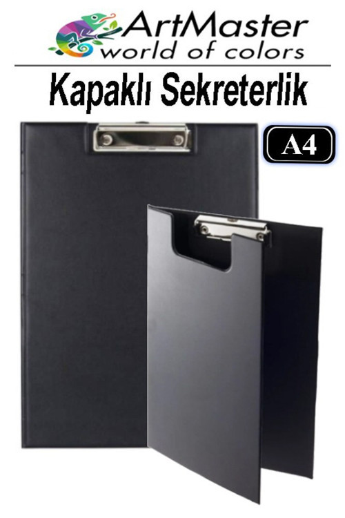 ArtMaster A4 Siyah Kapaklı Sekreterlik 1 Adet Renkli Klipsli Metal Mekanizmalı 80 Yaprak Kapasiteli Ofis Büro