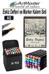 ArtMaster A5 Eskiz Defteri 50 Yaprak 100 gr 1 Adet 36 Renk Marker Kalem Çift Taraflı Touch Çift Uçlu Eskiz Defteri Boya Seti
