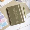 Şık kumaş kapak tasarımı ve altın yaldız baskısıyla sadece işlevsel değil, aynı zamanda estetik bir görünüm sunar. Dayanıklı spiralli yapısıyla her yerde rahatça açıp kullanabilir, notlarını güvenle tutabilirsin.